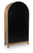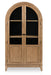 This accent cabinet is a stunning marriage of architectural intrigue and sophisticated storage. Its glass-paneled doors and natural wood tone create an inviting warmth well-suited to transitional spaces. Ideal for showcasing fine china or storing everyday essentials, this versatile piece proves that practical storage can be utterly beautiful.