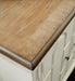 Whether your style is cottage chic, boho inspired or uniquely eclectic, this accent cabinet is sure to look right at home. Standout elements include raised panel door fronts that are a work of art. Wonderfully timeworn in antique white, this 4-door cabinet is topped with a warm brown finish for two-tone interest. Two adjustable shelves add to its practicality.