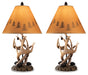 | Details | Set of 2 table lamps, Richly rustic base crafted of poly resin, Paper silhouette shade with decorative design, Each table lamp takes 100-watt max bulb or CFL 23 watts max; UL Listed, On/off pull chain switch, Clean with a soft, dry cloth, Assembly required | |