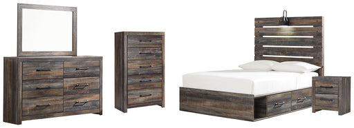 Signature Design by Ashley®This queen-size panel bed with storage, dresser and mirror is a refined take on barn board beauty. Its complex, replicated wood grain showcases hin...