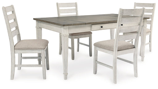 Signature Design by Ashley®This 5-piece dining set serves up the best in rustic farmhouse living. The extension dining table's two-tone distressed finish pairs a brown tablet...