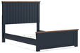 | Details | B414B3: Includes panel headboard, footboard, rails and slats, Made with hardwood solids, mindi wood veneer and MDF substrates, Two-tone finish features a dark slate blue with a light brown wood-tone top, Foundation/box spring required, sold separately, Mattress available, sold separately, Assembly required, B414B1: Includes dresser and mirror, Made with hardwood solids, mindi wood veneer and MDF substrates, Two-tone finish features a dark slate blue with light brown wood-tone top, Nickel-tone metal knobs, 6 drawers with fully finished interior, dovetail construction and heavy duty ball-bearing side glides, Mirror attaches to back of dresser, | |
