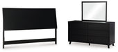 | Details | B1013-58: Made with engineered wood (MDF/particleboard/plywood) and decorative laminate for the right balance of affordability and durability, Matte black finish with subtle replicated wood grain, Decorative laminate replicates natural or man-made material surfaces with consistent color, pattern and texture, ¼" bolts (not included) are needed to attach headboard to your existing bed frame, Minor assembly required, B1013B11: Includes dresser and mirror, Made with engineered wood (MDF/particleboard/plywood) and decorative laminate for the right balance of affordability and durability, Matte black finish with subtle replicated wood grain, Decorative laminate replicates natural or man-made material surfaces with consistent color, pattern and texture, 6 smooth-gliding drawers, Drawer interiors are lined with a faux linen laminate for a clean, finished look, Integrated drawer pulls, Framed front and pilasters, Mirror attaches to back of dresser; can also be mounted on wall horizontally or vertically, Safety is a top priority, clothing storage units are designed to meet the most current standard for stability, ASTM F 2057 (ASTM International), Drawers extend out to accommodate maximum access to drawer interior while maintaining safety, Minor assembly required, | |