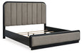Rowanbeck King Upholstered Panel Bed with Mirrored Dresser