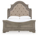Details B751B2: Includes queen panel headboard, footboard and rails, Made with acacia wood, birch and acacia veneers, engineered wood and cast resin components, Antiqued gray finish, Ornately shaped headboard with inset upholstered cushion, Foundation/box spring required, sold separately, Mattress not included, sold separately, Assembly required, B751B1: Includes dresser and mirror, Made with acacia wood, birch and acacia veneers, engineered wood and cast resin components, Two-tone finish; antiqued gray body with a rich, deep walnut brown finish on top, Dark bronze-tone bails and knobs, 7 smooth-gliding drawers with dovetail construction, Framed drawer fronts , Overlay decorative corbels, Mirror attaches to back of dresser, Assembly required,