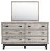 | Details | B1036B2: Includes queen panel headboard, footboard and rails, Made with engineered wood (MDF/particleboard/plywood) and decorative laminate for the right balance of affordability and durability, Light gray finish over a replicated oak grain with authentic touch; footboard base has matte black finish with subtle replicated wood grain, Decorative laminate replicates natural or man-made material surfaces with consistent color, pattern and texture, Foundation/box spring required, sold separately, Mattress available, sold separately, Assembly required, B1036B1: Includes dresser and mirror, Made with engineered wood (MDF/particleboard/plywood) and decorative laminate for the right balance of affordability and durability, Light gray finish over a replicated oak grain with authentic touch; base has matte black finish with subtle replicated wood grain, Decorative laminate replicates natural or man-made material surfaces with consistent color, pattern and texture, Handles with matte black finish, 6 smooth-gliding drawers, Drawer interiors are lined with a faux linen laminate for a clean, finished look, Mirror attaches to back of dresser; can also be hung horizontally or vertically, Safety is a top priority, clothing storage units are designed to meet the most current standard for stability, ASTM F 2057 (ASTM International), Drawers extend out to accommodate maximum access to drawer interior while maintaining safety, Assembly required, | |