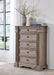 Discover something exceptional with this chest of drawers. Its impressive silhouette offers a casual traditional aesthetic, embodied by classic-inspired columns and a relaxed grayish brown finish. Casually cool drawers with inset framed fronts are packed with ample storage possibilities.