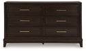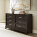 Details Made with hardwood solids, engineered wood and MDF substrates, Grayish brown wood-tone finish, Metal bar pulls with satin nickel-tone finish, 6 smooth-gliding drawers with dovetail construction and heavy duty ball-bearing side glides (top drawers felt lined)