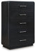 | Details | Made with hardwood solids and ash veneer, Black finish on textured wood grain surface, Burnished nickel-tone pulls, Waterfall edges, 5 smooth-gliding drawers with fully finished interior, dovetail construction and heavy duty ball-bearing side glides | |