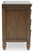 Details Made with hardwood solids, veneers and MDF substrates, Brown finish, Oil-rubbed bronze-tone knobs, 2 drawers with fully finished interior, dovetail construction and heavy duty ball-bearing side glides (top drawer felt lined), Turned feet, 110V power supply with USB-A and USB-C charging ports, Power cord included; UL Listed