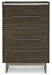 Clean lines lend sophistication and structure to this chest of drawers. Its complex rich grayish brown finish contrasts perfectly with a white marble top, while the streamlined silhouette features overlay slats to create visual interest. A metal base and bar pulls in a low-sheen steel finish add to this piece's contemporary vibe.