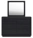 Details B768B4: Includes headboard, footboard and rails, Made with pine solids, veneers and engineered wood substrate, Textured black wood stain with waxy topcoat, Extra wide rails for a bench-like wrap around, Foundation/box spring required, sold separately, Mattress available, sold separately, Assembly required, B768B1: Includes dresser and mirror, Made with pine solids, veneers and engineered wood substrate, Textured black wood stain with waxy topcoat, Hardware-less design, 6 drawers with fully finished interiors, dovetail construction and ball-bearing side glides (top drawers felt lined), Mirror attaches to back of dresser, B768-46: Made with pine solids, veneers and engineered wood substrate, Textured black wood stain with waxy topcoat, Hardware-less design, 5 drawers with fully finished interiors, dovetail construction and ball-bearing side glides (top drawers with felt-lined bottoms), B768-92: Made with pine solids, veneers and engineered wood substrate, Textured black wood stain with waxy topcoat, Hardware-less design, 2 drawers with fully finished interiors, dovetail construction and ball-bearing side glides, 110V power supply with dual USB charging ports, Power cord included; UL Listed,