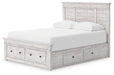 | Details | Includes panel headboard, storage footboard, 2 under bed storage units and roll slats , Made with engineered wood (MDF/particleboard/plywood) and decorative laminate for the right balance of affordability and durability, Whitewash replicated worn through paint over replicated wood grain with authentic touch, Decorative laminate replicates natural or man-made material surfaces with consistent color, pattern and texture, Handles with dark bronze-tone finish, 6 smooth-gliding storage drawers, Bed does not require additional foundation/box spring; accommodates most zero clearance adjustable bases with the addition of a bunkie board , Mattress available, sold separately, Assembly required | |