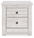 Details Made with engineered wood (MDF/particleboard/plywood) and decorative laminate for the right balance of affordability and durability, Whitewash replicated worn through paint over replicated wood grain with authentic touch, Decorative laminate replicates natural or man-made material surfaces with consistent color, pattern and texture, Hardware with dark bronze-tone finish, 2 smooth-gliding drawers, 2 slim-profile USB charging ports, Power cord included; UL Listed, Minor assembly required