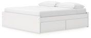 Create the modern bedroom of your dreams. This king platform bed with storage offers a minimal design with maximum style, combining ultra-clean lines and an easy-elegant solid white finish with a hardware-less aesthetic. Spacious storage drawers with ball-bearing glides make putting things away a snap. And this bed doesn't need a box spring or foundation, so you can splurge on a mattress that's sure to carry you away to a soothing place.