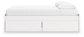| Details | Includes platform bed panels, platform rails, roll slats and 4 side storage drawers, Made with engineered wood (MDF/particleboard/plywood) and decorative laminate for the right balance of affordability and durability, Solid white finish, Decorative laminate replicates natural or man-made material surfaces with consistent color, pattern and texture, 4 smooth-gliding storage drawers with ball-bearing side glides; vinyl-wrapped sides and back for durability, Bed does not require additional foundation/box spring; accommodates most zero clearance adjustable bases with the addition of a bunkie board, Mattress available, sold separately, Assembly required | |