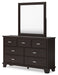 | Details | B441B6: Includes panel headboard, footboard, rails and slats, Made with hardwood solids, engineered wood veneer and MDF substrates, Dark brown finish, Floating panel headboard, Picture frame footboard, Foundation/box spring required, sold separately , Mattress available, sold separately, Assembly required, B441B1: Includes dresser and mirror, Made with hardwood solids, engineered wood veneer and MDF substrates, Dark brown finish, Metal bar pulls with bright nickel-tone finish, 7 smooth-gliding drawers with dovetail construction and metal center guides, Drawer interiors are lined with a wood grain laminate for a clean, finished look, Top moulding on dresser, Mirror attaches to back of dresser, B441-92: Made with hardwood solids, engineered wood veneer and MDF substrates, Dark brown finish, Metal bar pulls with bright nickel-tone finish, 2 smooth-gliding drawers with dovetail construction and metal center guides, Drawer interiors are lined with a wood grain laminate for a clean, finished look, Top moulding, | |
