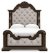 | Details | B947B2: Includes upholstered panel headboard, upholstered panel footboard and panel rails, Made with hardwood solids, oak and ash swirl veneers, MDF substrates and cast resin components, Dark brown finish, Polyester upholstery with button tufting, Foundation/box spring required, sold separately, Mattress available, sold separately, Assembly required, B947B1: Includes dresser and mirror, Made with hardwood solids, oak and ash swirl veneers, MDF substrates and cast resin components, Dark brown finish, 6 smooth-gliding drawers with dovetail construction (top drawer felt lined), Drawer pulls with antiqued goldtone finish, Mirror attaches to back of dresser, B947-46: Made with hardwood solids, oak and ash swirl veneers, MDF substrates and cast resin components, Dark brown finish, 5 smooth-gliding drawers with dovetail construction (top drawer felt lined), Drawer pulls with antiqued goldtone finish, B947-93: Made with hardwood solids, oak and ash swirl veneers, MDF substrates and cast resin components, Dark brown finish, 2 smooth-gliding drawers with dovetail construction (top drawer felt lined), Pull-out tray behind bottom drawer, Drawer pulls with antiqued goldtone finish, 110V power supply with dual USB charging ports, Power cord included; UL Listed, | |