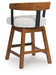 Casually styled, this counter height bar stool beautifully captures the essence of rustic refinement. Its plushly upholstered seat and gently distressed, burnished finish make pulling up a chair much more enticing. To top it off, the swivel seat and contoured back make it easy to have over-the-counter conversations in comfortable style.