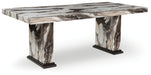 | Details | Includes dining table top and base, Made with solid hardwood, decorative paper laminate and MDF substrate, Tabletop and double pedestal base with replicated marble pattern; polyester topcoat for lasting beauty, Seats up to 8, Assembly required | |