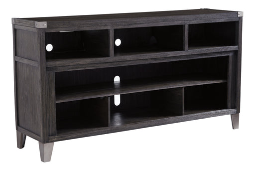 Signature Design by Ashley®Make watching TV a joy with this large TV stand. Top surface accommodates up to 70-inch TVs. Its rustic-industrial style is sure to complement any ...