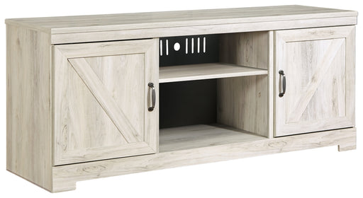 Signature Design by Ashley®Express your farmhouse style with this TV stand. Its wispy white finish over replicated oak wood grain is a delightful change from the ordinary. Cl...