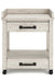 | Details | Made of pine veneers, pine wood and engineered wood, Distressed whitewash finish, 2 smooth-gliding drawers with dovetail construction, 2 open shelves, Vintage patinated bronze-color hardware, Casters for mobility, 2 electrical outlets and USB charging ports, Power cord included; UL Listed, Assembly required | |