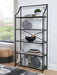 | Details | Shelves made with clear glass, Metal frame, Frame with antiqued black finish, 5 fixed shelves, Assembly required | |