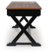 Raise the bar on modern farmhouse style with this home office desk. Its casual good looks are accentuated with a two-tone finish, which pairs a warm satin black base with a contrasting butcher block veneer desktop. The drop-down keyboard and cord management raceway bring both form and function to your at-home workspace. Use this desk as a stand-alone work area, or combine it with the matching desk return (sold separately) to create a larger work surface.