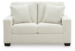 The crisp neutral hue and striking design details of this loveseat create a living room that expertly reflects your contemporary taste. For irresistibly cool textural appeal, the ultra-soft fabric is enhanced by a small-scale corded look. With a clean-lined silhouette complete with track arms, this loveseat allows you to take a trend-right approach to everyday living.
