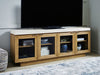 | Details | Made with hardwood solids, white oak veneer and engineered woods, Light brown finish, Faux concrete melamine top, MEGA-TUFF® surfaces are made of easy-clean melamine, which is heat-, scratch-, water- and stain-resistant to help withstand daily wear and tear, 4 doors with glass inserts and soft-close hinges, 2 adjustable shelves, Openings in back for electronics, Fully assembled | |