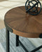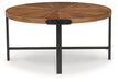 | Details | Includes coffee table and 2 end tables, Made with acacia wood veneer, MDF substrate and metal, Tops with rich brown finish, Legs with durable dark bronze-tone powder coat finish, Starburst veneer pattern, Assembly required | |