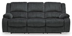 Built for luxury, this power reclining sofa lets you kick back in reliable style. The thick, softly textured chenille upholstery provides a comfy surface on which to lounge. With bustle back construction and thickly cushioned armrests, this piece gives you the dependable support you need to unwind while the handy USB port provides the power to keep your devices going.
