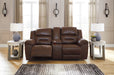 For those who love the cool look of leather but long for the warm feel of fabric, this power reclining loveseat delivers both with ease. Its high-performance padded faux leather is remarkably durable and easy to clean, making it just the thing for family spaces. When it’s time to relax, the one-touch power control puts the perfect position at your fingertips. Channel-stitched back cushions provide indulgent lumbar support for maximum seating comfort—not to mention fashion-forward flair.