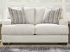 This loveseat speaks to those drawn to fresh, contemporary style with richly neutral appeal. Wrapped in a wonderfully plush fabric loaded with multi-tonal interest, this on-trend piece has a warm, welcoming charm. Coordinating accent pillows add to the indulgence. Kick back, relax and settle in for comfort with this cool addition for modern spaces.