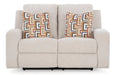 This reclining loveseat invites you to a luxuriously soft lounging experience. The chic hue fits right in with contemporary color palettes. A tufted back keeps the look right on trend. Balancing style and function, its pull tab reclining effortlessly takes you to relaxation mode.