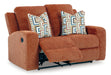 This reclining loveseat invites you to a luxuriously soft lounging experience. The chic hue fits right in with contemporary color palettes. A tufted back keeps the look right on trend. Balancing style and function, its pull tab reclining effortlessly takes you to relaxation mode.