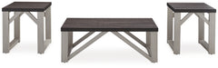 | Details | Includes coffee table and 2 end tables, Made of decorative laminate and MDF substrate, Replicated gray wood top, Antiqued white base, Assembly required | |