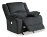 Built for luxury, this power rocker recliner lets you kick back in reliable style. The thick, softly textured chenille upholstery provides a comfy surface on which to lounge. With bustle back construction and thickly cushioned armrests, this piece gives you the dependable, powered support you need to unwind while the handy USB port provides the power to keep your devices going.