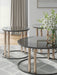 Details Includes coffee table and 2 end tables, Made with tubular metal legs and frame, Legs with goldtone finish, Frame with matte black finish, Tempered black glass top