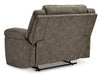 Is being too comfortable even possible? It’s worth finding out in this oversized recliner. Wrapped in the plushest of neutral faux leather upholstery, it's perfectly cushioned in all the right places. We love the recliner's super wide seating with plenty of room for two. And its effortless reclining elevates your comfort level into the stratosphere.
