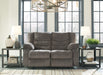 This reclining loveseat puts the win in winning. Its waterfall back design and doubly plump pillow top arms team up with soft chenille fabric to go for the goal. Ample seating room makes the comfort possibilities endless. Sit back and relax. You won’t go wrong with this reclining loveseat.