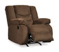 This rocker recliner puts the win in winning. Its waterfall back design and doubly plump pillow top arms team up with soft chenille fabric to go for the goal. Ample seating room makes the comfort possibilities endless. Sit back and relax. You won’t go wrong with this recliner.
