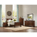 Traditional in design and modest in scale, the elegant Mayville Collection takes its design inspiration from the classic Louis Philippe styling. The Okume veneer of the mirror is paired with a brown cherry finish and classic framing that pairs perfectly with the available dresser.