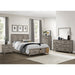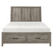 Following the trend of rusticated simplicity is the Bainbridge Collection. Melamine laminate perfectly mimics the look of weathered gray wood, lending to the rustic style. The transitional framing of the Queen bed allows for placement in myriad bedroom settings, creating the perfect canvas for your preferred decorative style. Black metal bar hardware fronts the drawers of the storage footboard, providing complementing contrast to the gray finish.