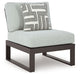 | Details | Includes 5 modular pieces: 2 armless chairs, corner chair and ottoman, Made with aluminum and resin wicker, Black finish, All-weather foam cushion core wrapped in soft polyester, Zippered cushions and throw pillows covered in solution-dyed high-performance fabric, Nuvella+™ is an outdoor fabric that can be cleaned and offers enhanced UV resistance, Clean fabric with mild soap and water, let air dry; for stubborn stains, use a solution of 4 oz. bleach to 28 oz. water, Stainless steel hardware, Designed to withstand the harsh elements of the outdoors, 3 throw pillows included, Assembly required | |