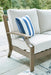 | Details | Rust-resistant aluminum frame with durable powder coated finish, Powder coated aluminum resists rusting and fading, Wood-look finish, Loose back and seat cushions, All-weather foam cushion core wrapped in soft polyester, Zippered cushions and throw pillows covered in solution-dyed high-performance fabric, Nuvella+ is an outdoor fabric that can be cleaned and offers enhanced UV resistance, Clean fabric with mild soap and water, let air dry; for stubborn stains, use a solution of 4 oz. bleach to 28 oz. water, 2 Nuvella throw pillows included, Stainless steel hardware, Designed to withstand the harsh elements of the outdoors, Assembly required | |