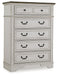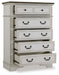 Traditional design. Casual appeal. You can have it all with this chest of drawers. A relaxed two-tone aesthetic merges with ornate profiled drawer fronts and pilasters to give the distinctive piece an allure all its own. Expansive drawers with quality dovetail construction and dark bronze-tone hardware reflect attention to detail from the inside out.