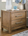 This nightstand sits comfortably at the intersection of modern lodge and farmhouse aesthetics. Your warm and welcoming disposition is reflected in the charming architectural elements and light brown glazed finish. Even with its poise, the nightstand remains practical. Included USB ports keep you charged up for late-night scrolling, defining your bedroom with reliable function and style.