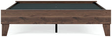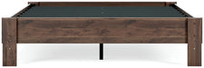 | Details | Queen platform bed (does not include headboard), Made with engineered wood (MDF/particleboard/plywood) and decorative laminate for the right balance of affordability and durability, Rich brown finish over replicated walnut wood grain with authentic touch, Bed does not require additional foundation/box spring; accommodates most zero clearance adjustable bases, Mattress available, sold separately, Assembly required | |